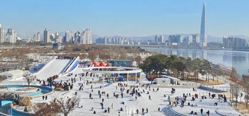 每年冬天,首爾市內也會開設小型的雪橇場,想體驗冬季活動的人不用特地離開市區,能就近體驗雪國行程。纛島漢江公園雪橇場為具備大、小型滑道的雪橇場,夏天作為戶外游泳池,冬天則作為雪橇場開放使用,適合闔家同遊。
